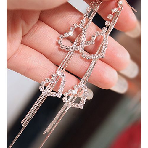 Features: Linear Earring, Long, Dangle, Hook Earrings, Tassel, Dazzling Rhinestone, Heart