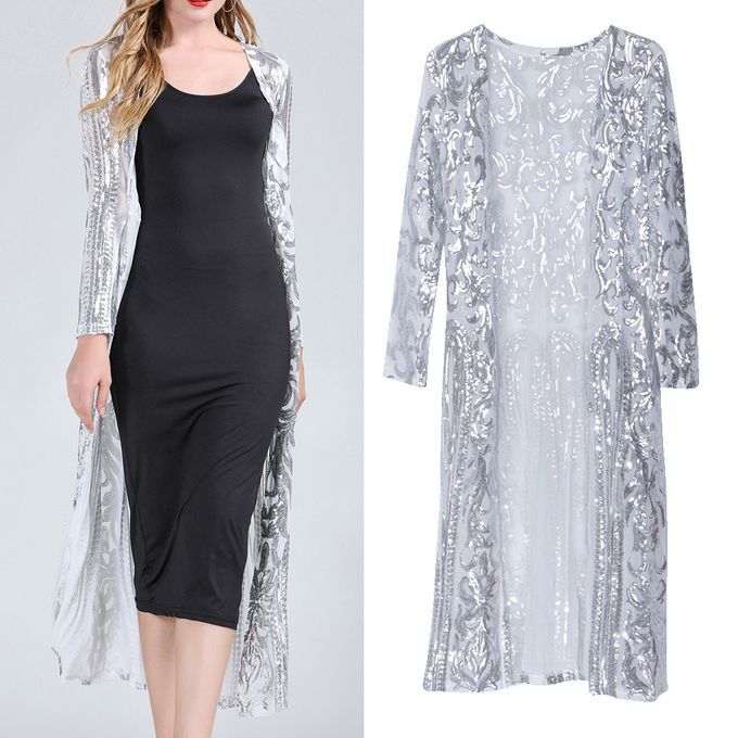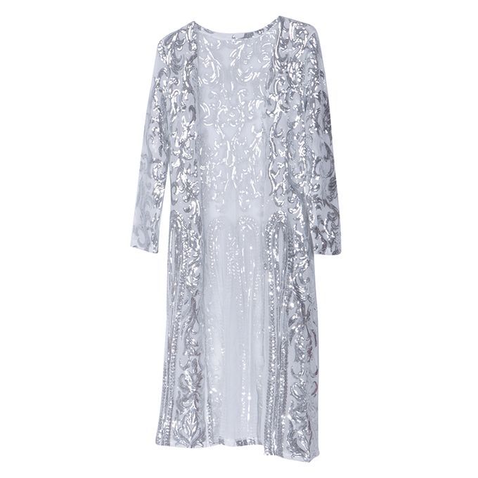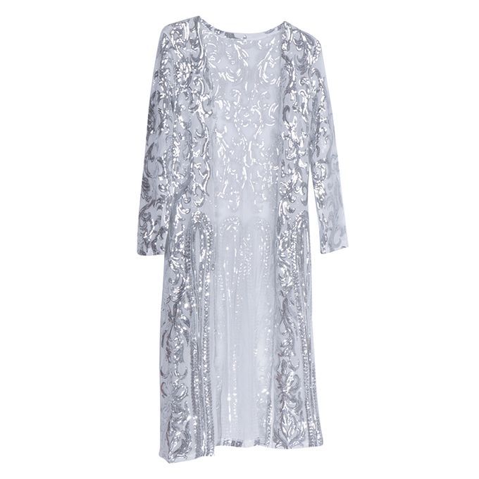 Buy Lady's Cardigan Outwear Full Sleeve Open Elegant Autumn Long Silver in Nigeria