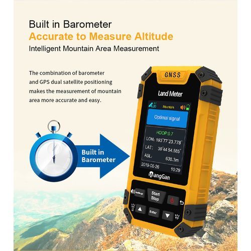Description Quick Details Brand Name:WangGan Application:Land Surveying Color:Black + Yellow Battery:Lithium Battery+AAA battery Function:Multi-function Warranty:12 Months Dimension:117mm*61mm*22mm Weight:120g(No battery) Satellite signals:GPS GNSS SBAS BeiDou Working temperature:-20°C~65°C Storage temperature:-40°C~75°C Feature: High sensitivity GNSS receiver chip. Automatic farmland area & length measurement. Easy to operate,easy to export data. Able to set unit-price,total working price display after measurement. Fallproof,waterproof and dustproof. HD color display Package list: 1*S4 GPS land meter