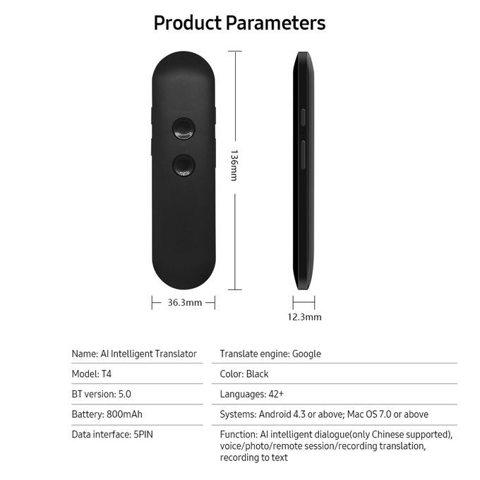 It is not only a translation machine, but also a recording pen. You can record your voice to get text or to get translation.
