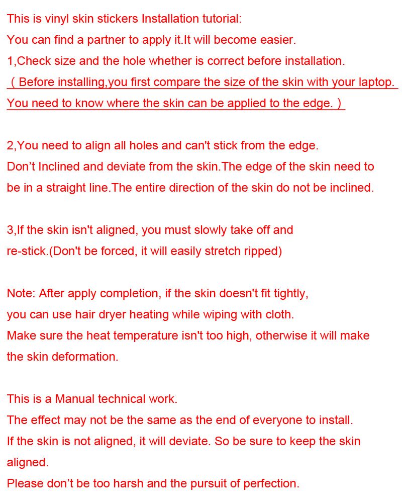 PERFECT PROTECTION:This laptop skin is highly durable, dustproof, waterproof,non-fading reusable, gooey free adhesive and prevents abrasions and scratches.