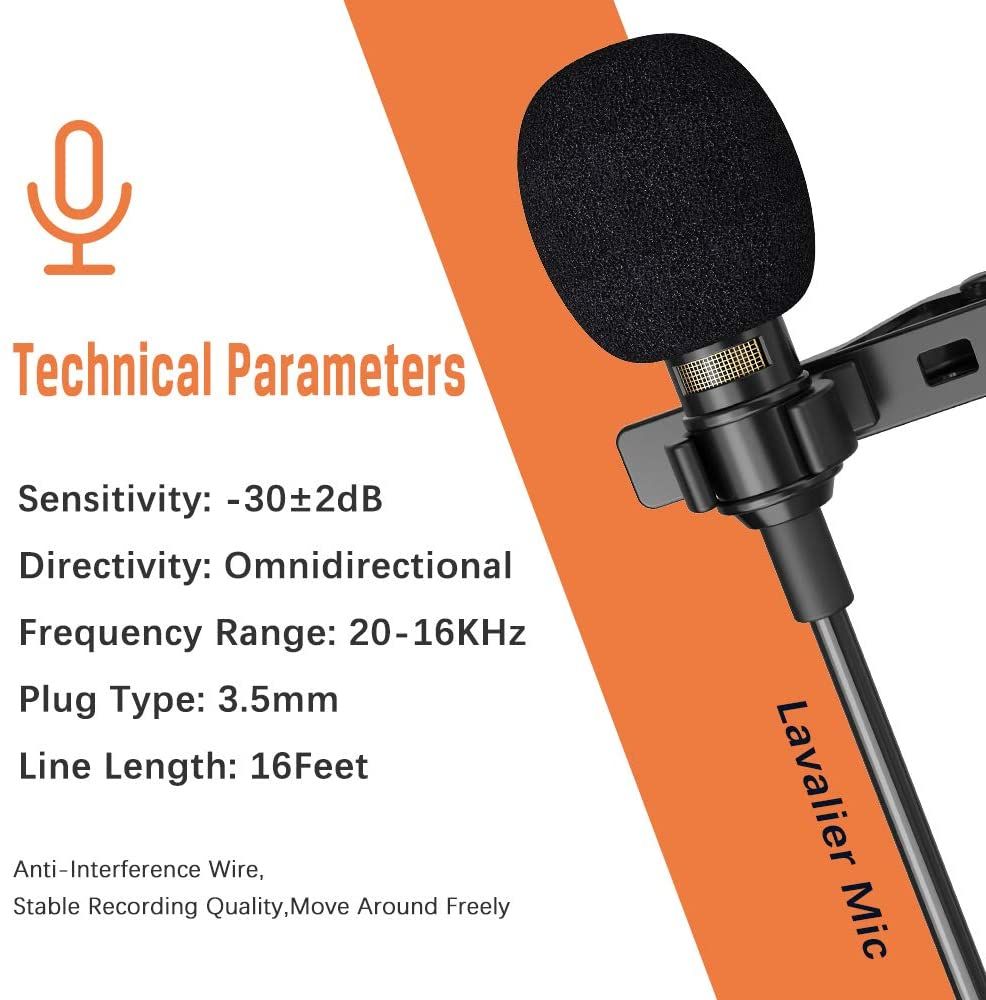 - EXTRA-LONG CORD: The 3.5 mm lavalier microphone cord is 16 FEET!!! Perfect in every possible recording scenario. You don't have to worry about short distance for recording sound. Move around freely when doing video recording!!!