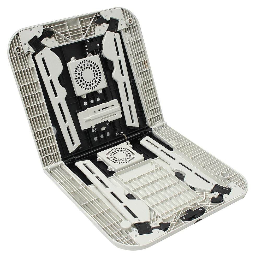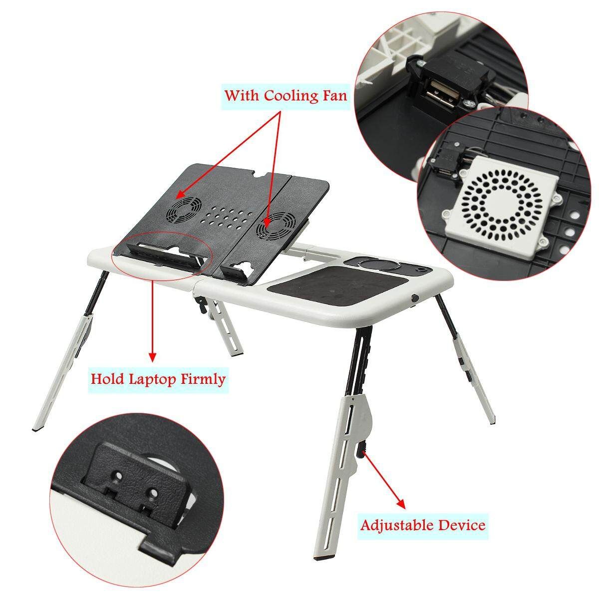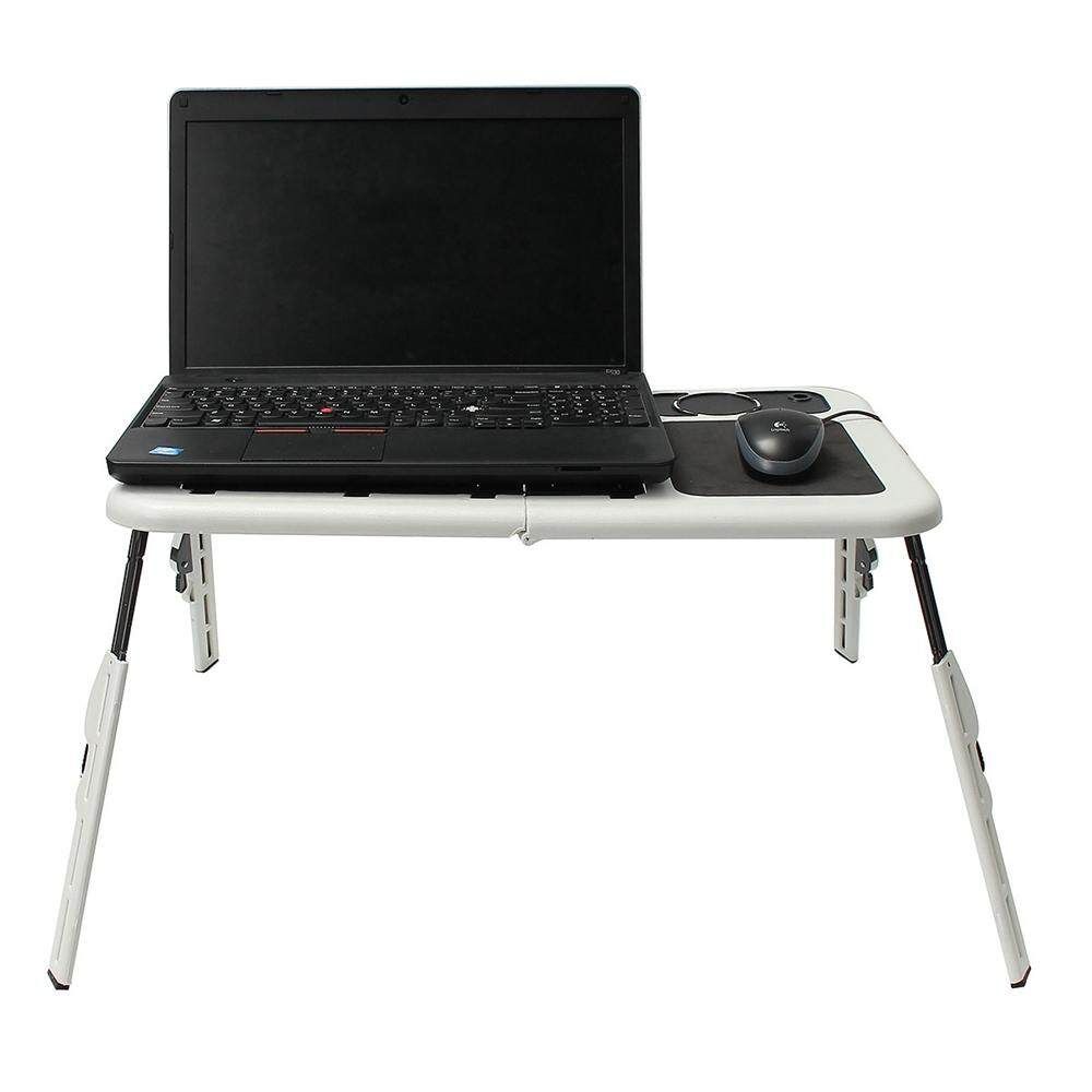 With flexible height and angle adjustments, this laptop table adapts to fit your optimal comfort level in just seconds. Dual built-in USB-powered fans cool your laptop to increase performance and prevent overheating.