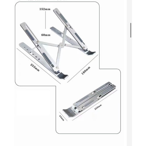 The Innovative Laptop StandSleek adjustable laptop stand made of aluminium alloy with 6 angles of adjustments. Lightweight durable design allows laptop device to breathe away from the surface. It improves air circulation around the laptop device. Multi angle adjustments reduces back aches and tension associated with incorrect sitting posture when using the laptop. The laptop stand provides a better experience for you and better conditions for your laptop. It just makes carrying easy and holds your laptop firm and steady. It's not a desk but bring losts of convenience for your life.