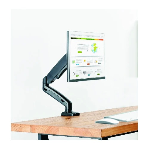 Full Motion Monitor Desk Mount: This gas spring dual monitor arm enables you to adjust monitor with 360 & deg; rotation, & plusmn;90 & deg; swivel and -90 & deg;/+90 & deg; tilt functions, easily finding optimal view angle. This gas spring single monitor arm can hold your monitor at any height (between 6.3 & rdquo; and 16.1 & rdquo; from the table surface) by adjusting the monitor arm to proper tension.