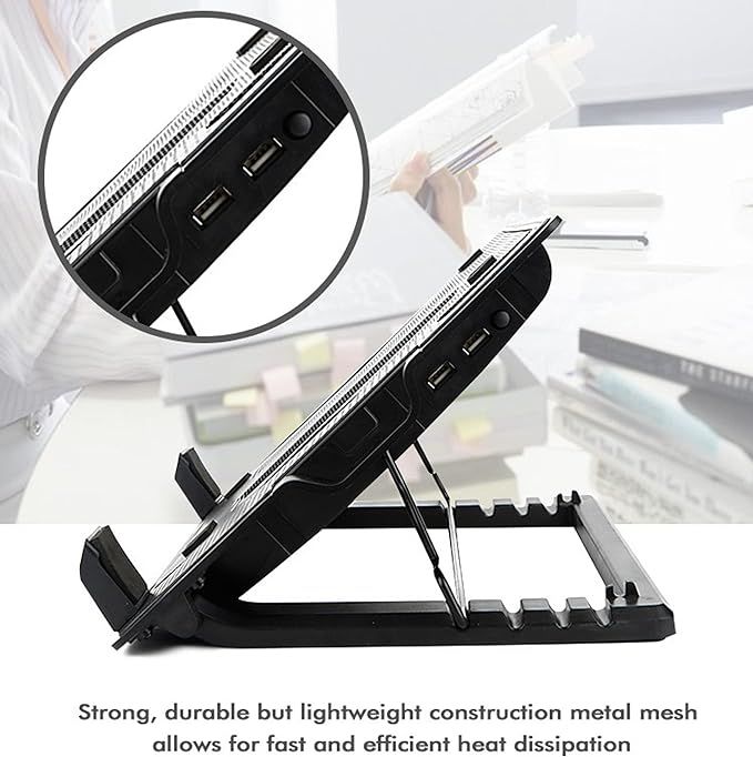 Optimal cooling performance Metal mesh surface with silent fan and ultimate thermal solution . It has an adjustable fan speed control, on/off switch which adapts to various working environments.