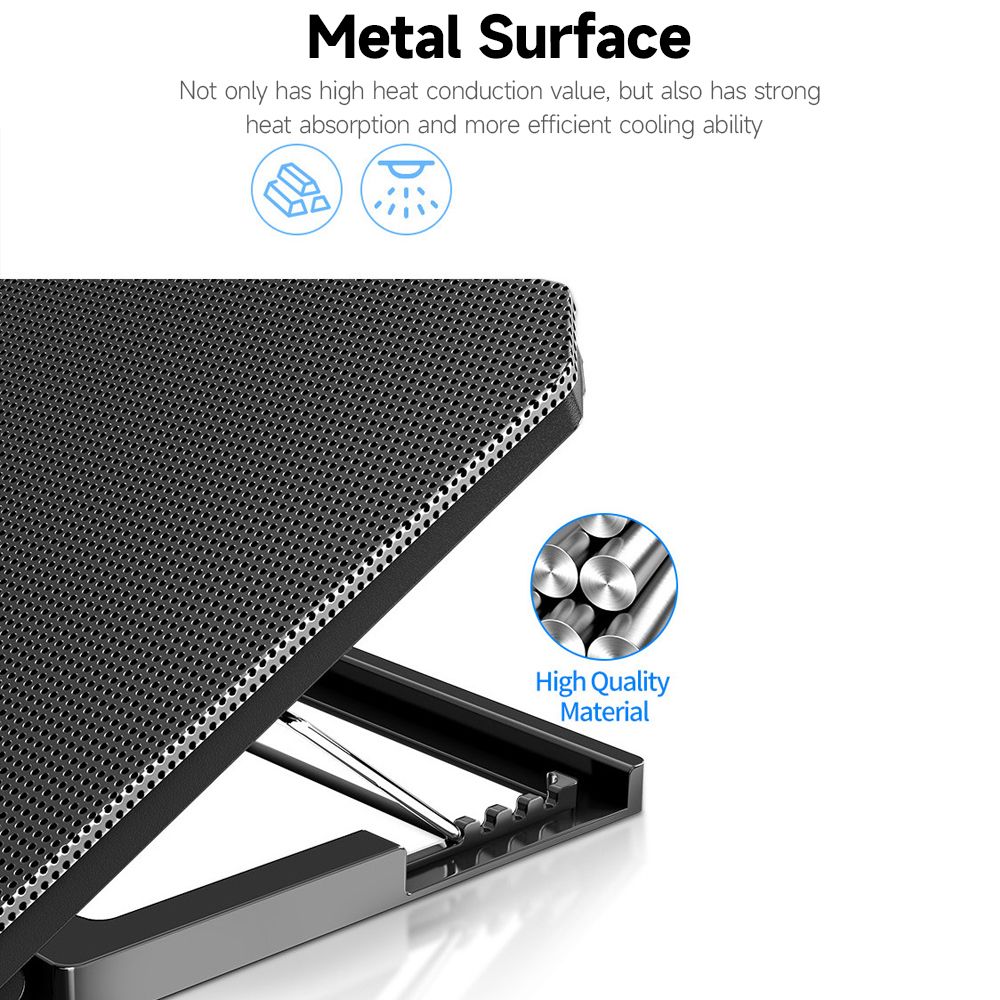 【Quality Strong & Durable】The gaming laptop fan cooling pad adopt high-quality directional metal mesh, 1.5mm aperture metal mesh surface, which is firm and not easy to deform. The maximum weight bearing is 40 lb.