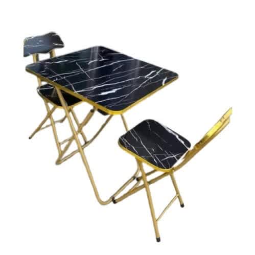 WHITE FAUX MARBLE TABLE & CHAIR SET.Both table and chair are FOLDABLE.Material: Metal and Wood..Table size: 60x60cm and it is square.Chair size: Medium.Price:.1 Table+ 1 chair= 54000.1 Table + 2 chairs= 66000.Extra Chair= 18000