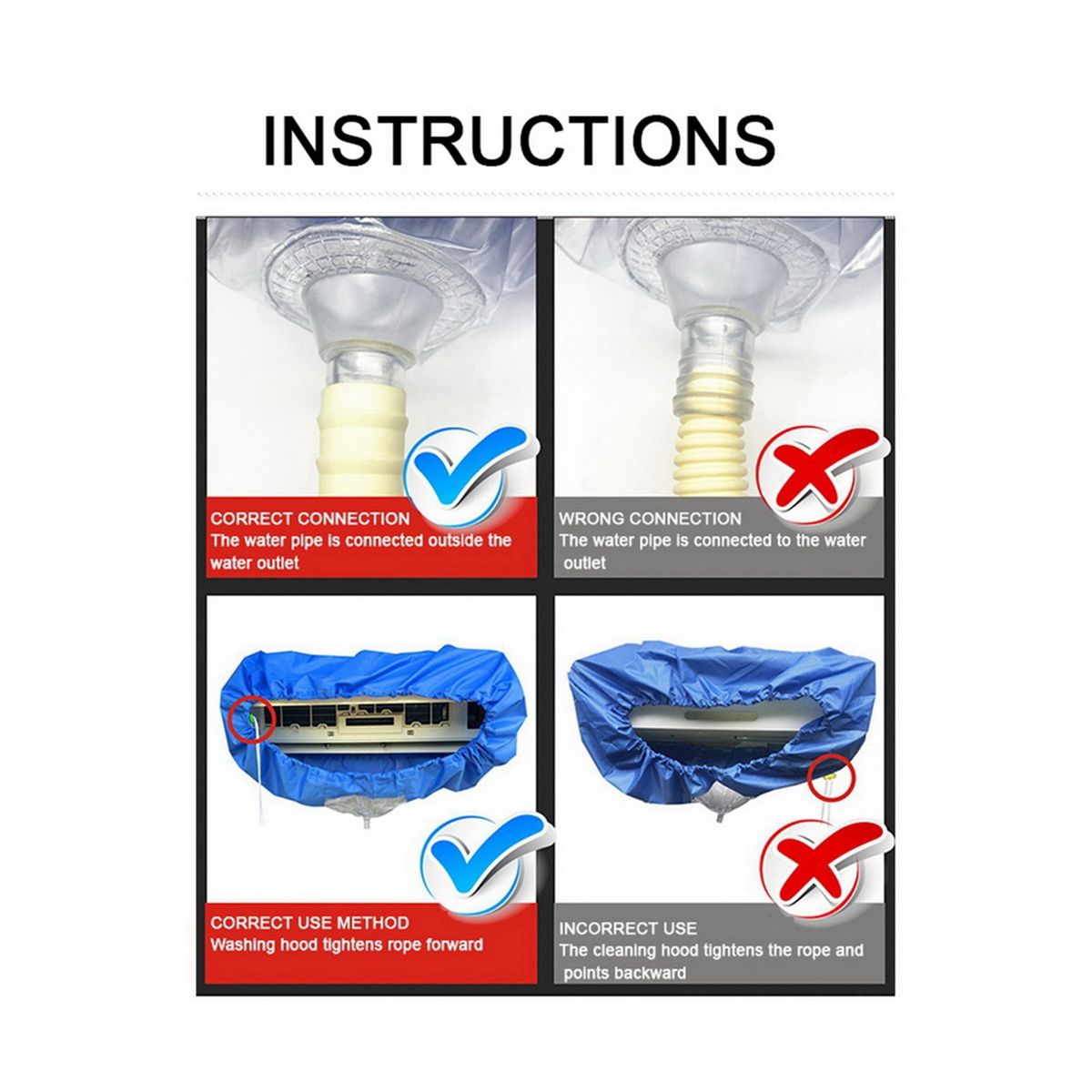 Elastic strap: Designed with a elastic strap and cord and cord fastener design in the cover edge to adjust the open mouth according to yourneed, effectively protects your air conditioner from sewage and splashing