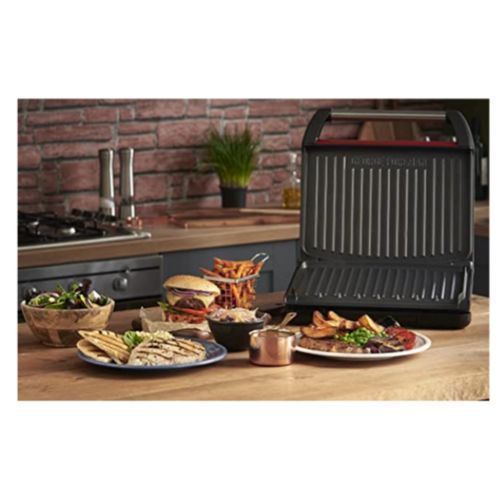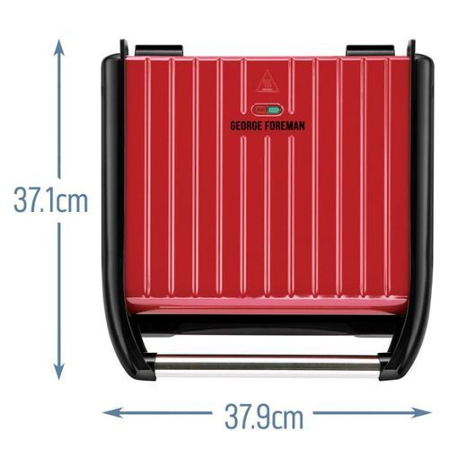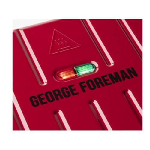 In a bold Red, it looks the ideal part in your kitchen. There for every occasion, whether it is meat-free Monday, a quick Wednesday night tea or a post-gym dinner, you can cook up a feast of food that is enough to feed everyone. So sear your steak, crisp up your halloumi or grill your vegetables. George Foreman is here with a contemporary design that is so current you won't mind it hanging around the kitchen. With an upper steel lid in a statement red, George Foreman's not only powerful in performance but also in appearance and features internal branding that looks elegant on show when you are fixing up a feast of flavours for your friends. George Foreman's always looking to improve the grills and these designed features really do make a difference to your cooking. With an ideal fit, clip in drip tray and a rear adjustable foot for angled grilling, you can drain away the excess fat removing up to 42 percent* of fat in your food. Cooking with your George Foreman grill has never been healthier or cleaner and if you want to neatly store your George Foreman grill away, it also comes with a cord wrap that allows for easy vertical storage. After tucking into a delicious dinner, the last thing you feel like doing is the washing up. That's why the George Foreman grill comes with non-stick plates for effortless cleaning. Once you heave cooked up a storm in the kitchen, simply wipe them down ready for your next use. *Measured against 20 percent fat content beef burgers.
