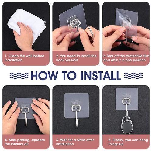 Easy to install: When installing, just gently uncover the protective film on the back of the hook, then paste the hook on a smooth surface, and press hard to remove the air to complete the installation without drilling and tools; Warm reminder: Please wipe the surface clean before use to ensure that the hook is firmly attached and not easy to fall off