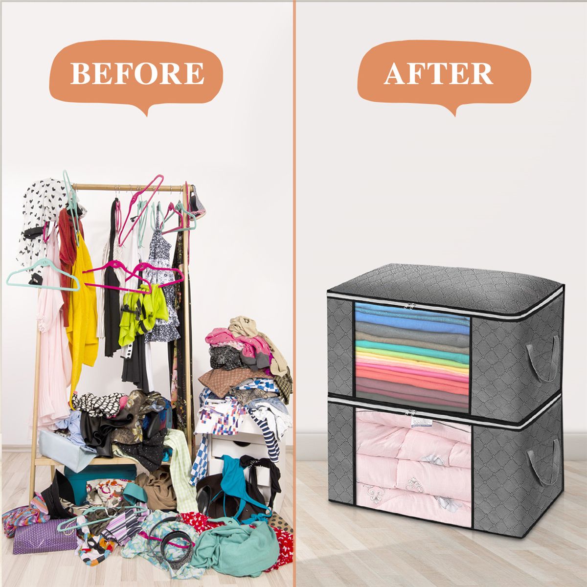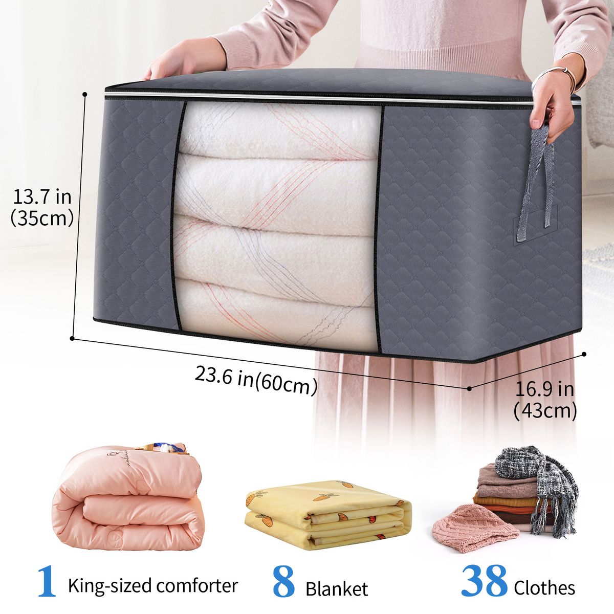 ?MUCH LARGER SIZE 23.6x16.9x 13.7 in ?Our storage bag measures 60 x 43 x 35 cm / 23.6 x 16.9 x 13.7 in,which is the largest bags for storage . It is ideal to store seasonal items, clothing, and household items. Suitable for your comforters, blankets, pillows and other baby clothes. More Space-efficient and offers extra protection for your belongings.