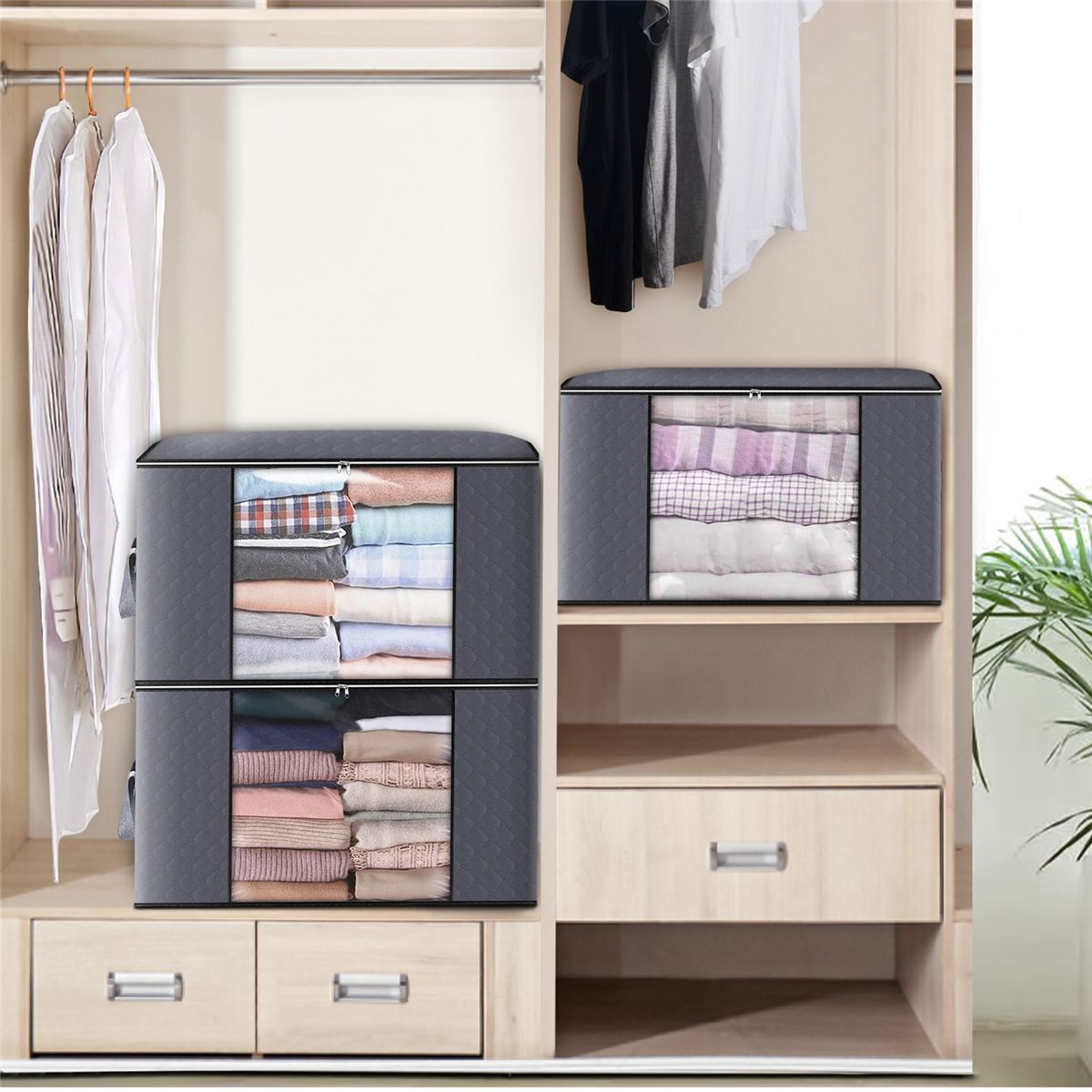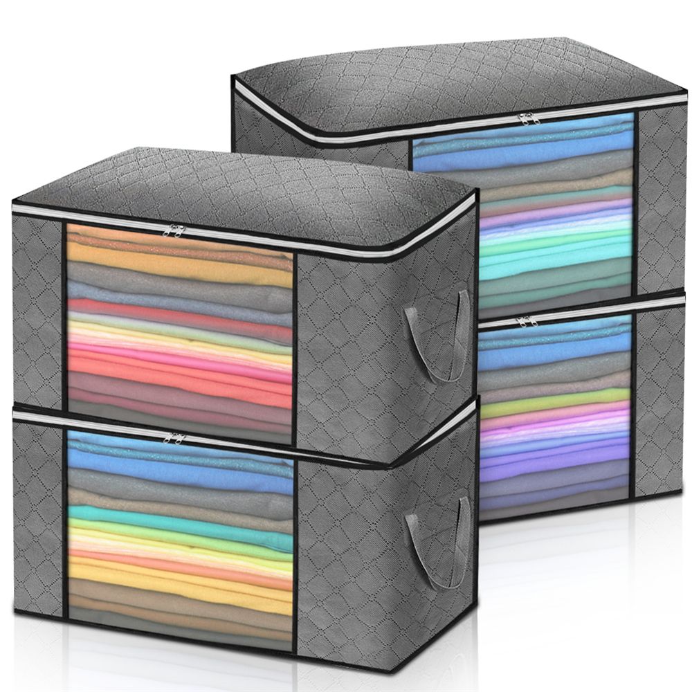 ?UPGRADED DURABLE MATERIAL ?Our clothes organizer is made from high-quality, odorless, three-ply composite non-woven fabric that promotes ventilation and protects your stored things. We provide 4 pack large clothing dust-free storage bags in one set, which is more worth to take this large bags back to your home for your clothes, blankets comforters pillows bedding storage.