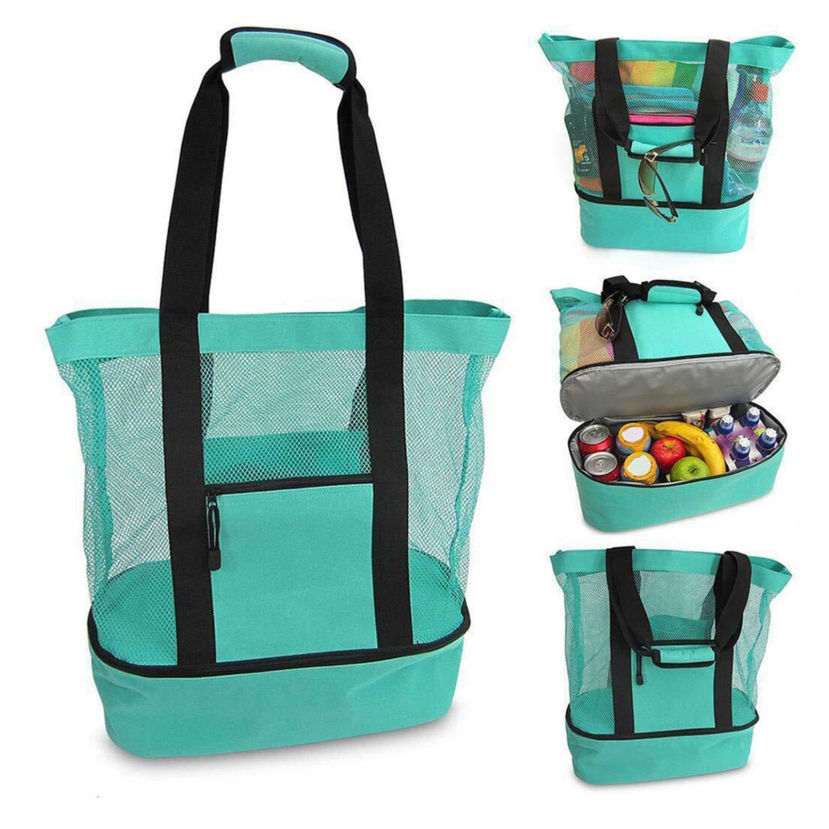 Enjoy the convenience of this fashionable, lightweight, canvas and mesh with an additional cooler bag segment with zipper.