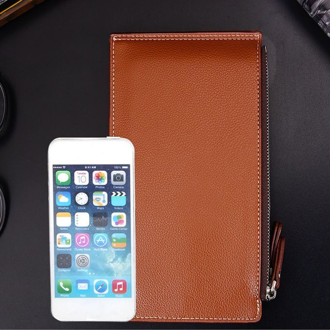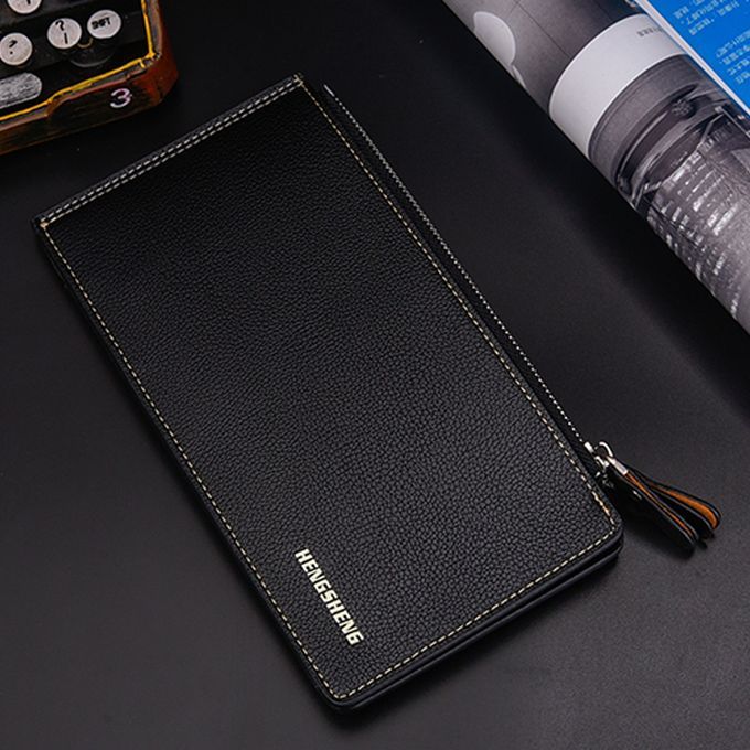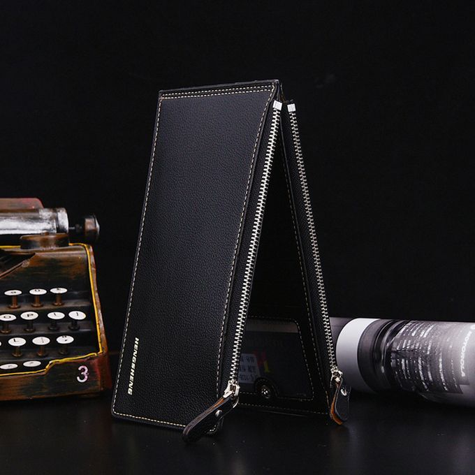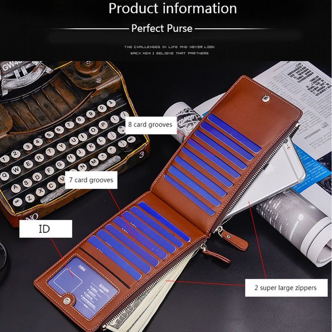 Large Capacity PU Leather Man Teenager Double Zipper Credit