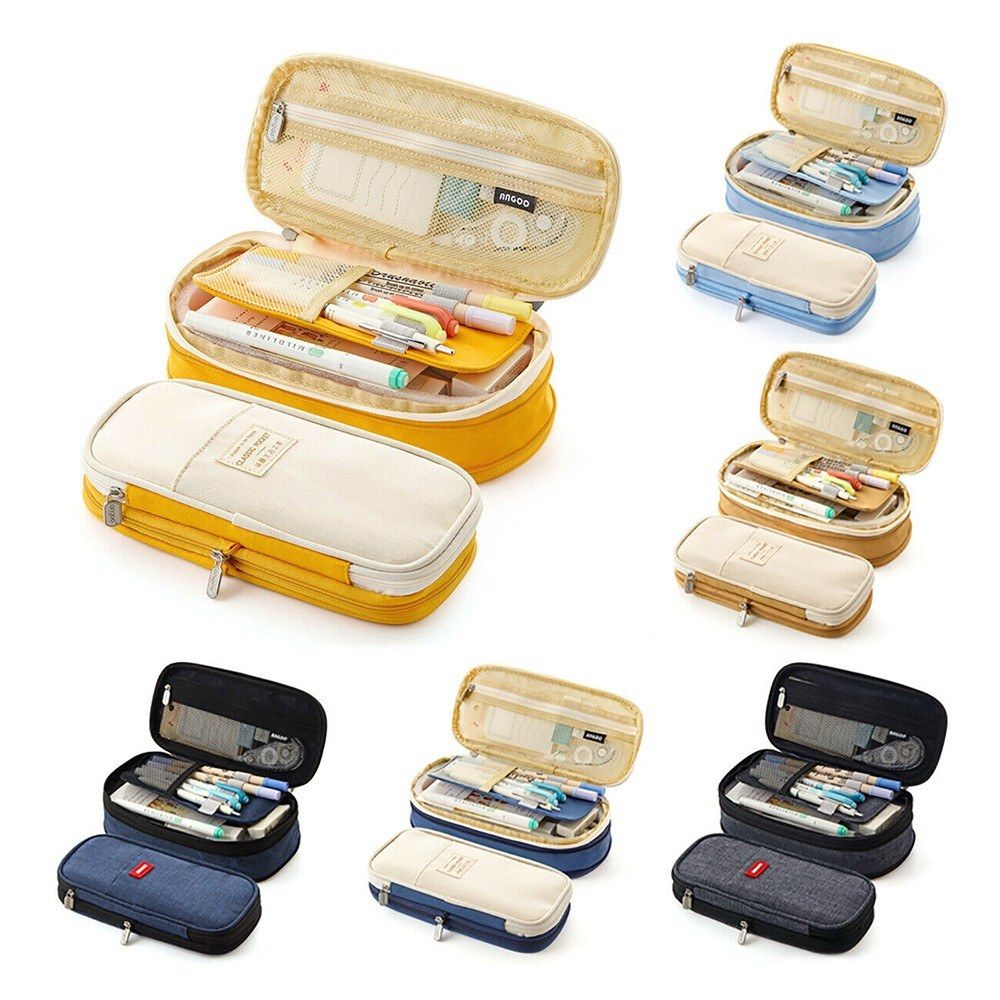 The pencil case made by superior canvas, breathable, anti-slip wear-resistant. Inner multilayer design, rank pencil and other stationery in order. The inner top have mesh layer, zipper open and close. Dual layer and dual zipper design, high hardness hardwear, do not easily deform.