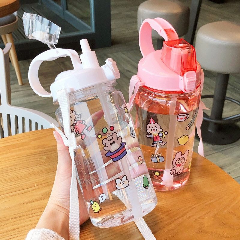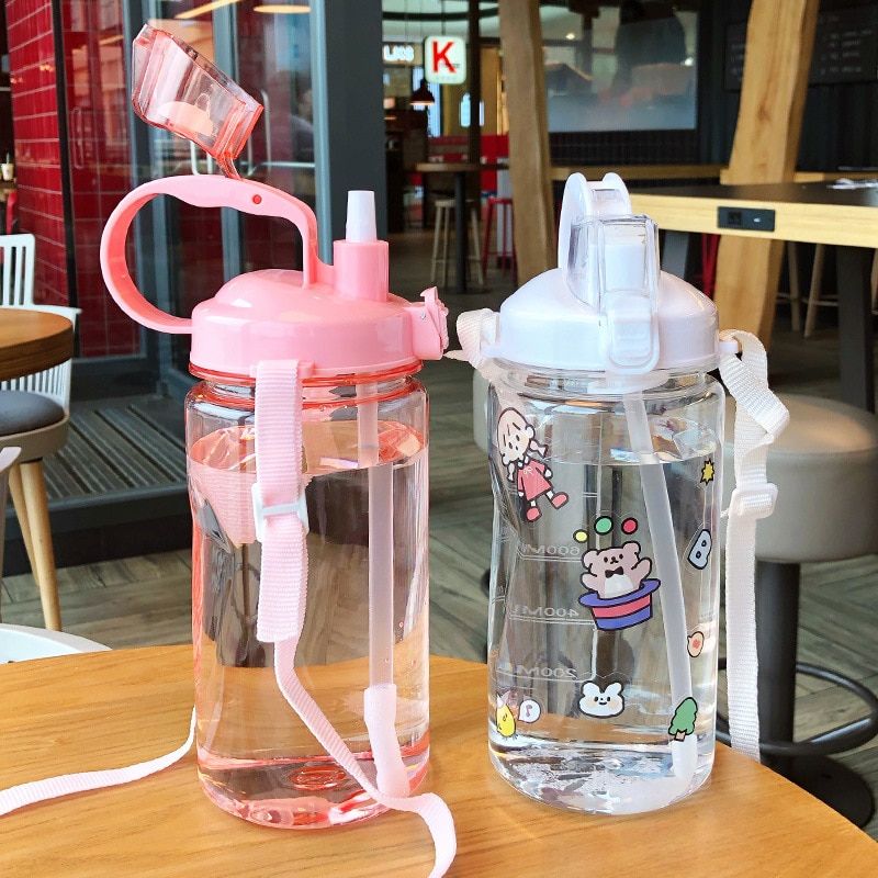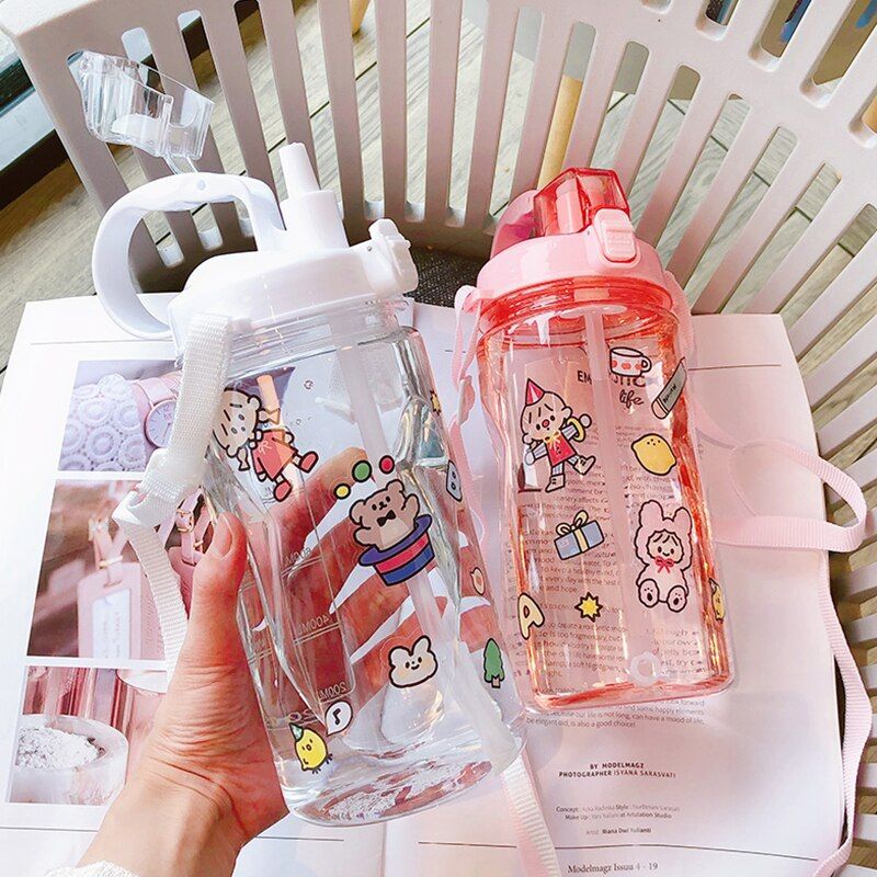 2000ML Large Capacity Water Bottle Portable Sport Bottles with Straw Camping Cycling Travel Plastic Juice Drinkware