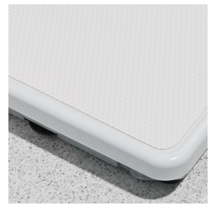 Boasting a sleek design with a platform size of 25 x 25 x 5cm, the bathroom scales can be used on either carpeted surfaces or hard floors.