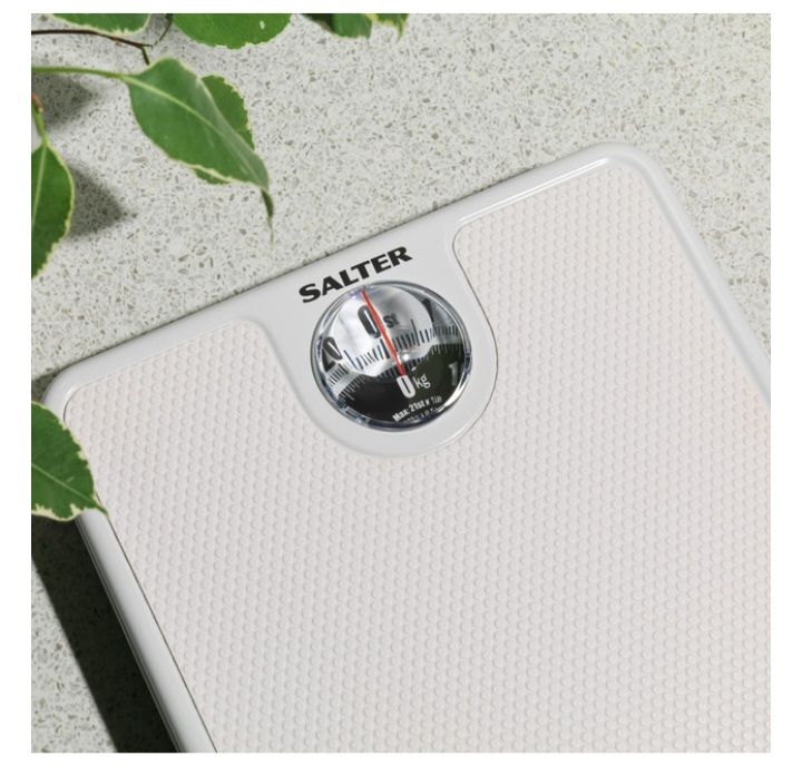 - Complete with an anti-slip mat and a powder-coated steel platform, these Salter mechanical scales have a maximum capacity of 133kg.