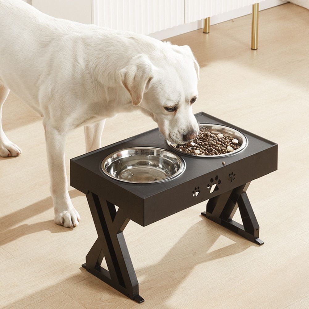 1X Large Dog Food Bowl Elevated Adjustable Stainless Steel Double Bowl Container Lift Tabel Pet Drinking Water Bowl Feeders Stand