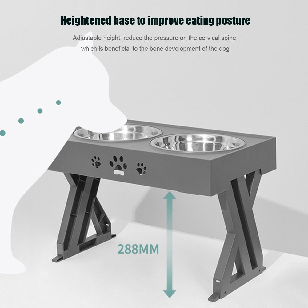 Large Dog Food Bowl Elevated Adjustable Stainle Steel Double Bowl Container Lift Tabel Pet Drinking Water Bowl Feeders with Stand Feature: The adjustable lifting dog bowl can definitely accompany your dog from puppies to elderly dogs. This is a bowl of food and water You can save multiple dog food racks. The height helps prevent pets' food and water from falling out. It can also be on the floor because it is closer to your pet's mouth. This will also encourage the dog to drink more water. It is safe and non-toxic, solid and durable, good glo without any addition, so that pets can eat more at ease. Separate design is used to aemble the bowl bottom and base at will. Separate design is adopted, which can be aembled at will and is easy to clean. Specification: Material: stainle steel/plastic Size: 440*288mm Color: Black/Gray Note: 1. Due to the different monitor and light effect, the actual color of the item might be slightly different from the color showed on the pictures. Thank you! 2. Please allow 1-2cm measuring deviation due to manual measurement. 1 X Large Dog Food Bowl