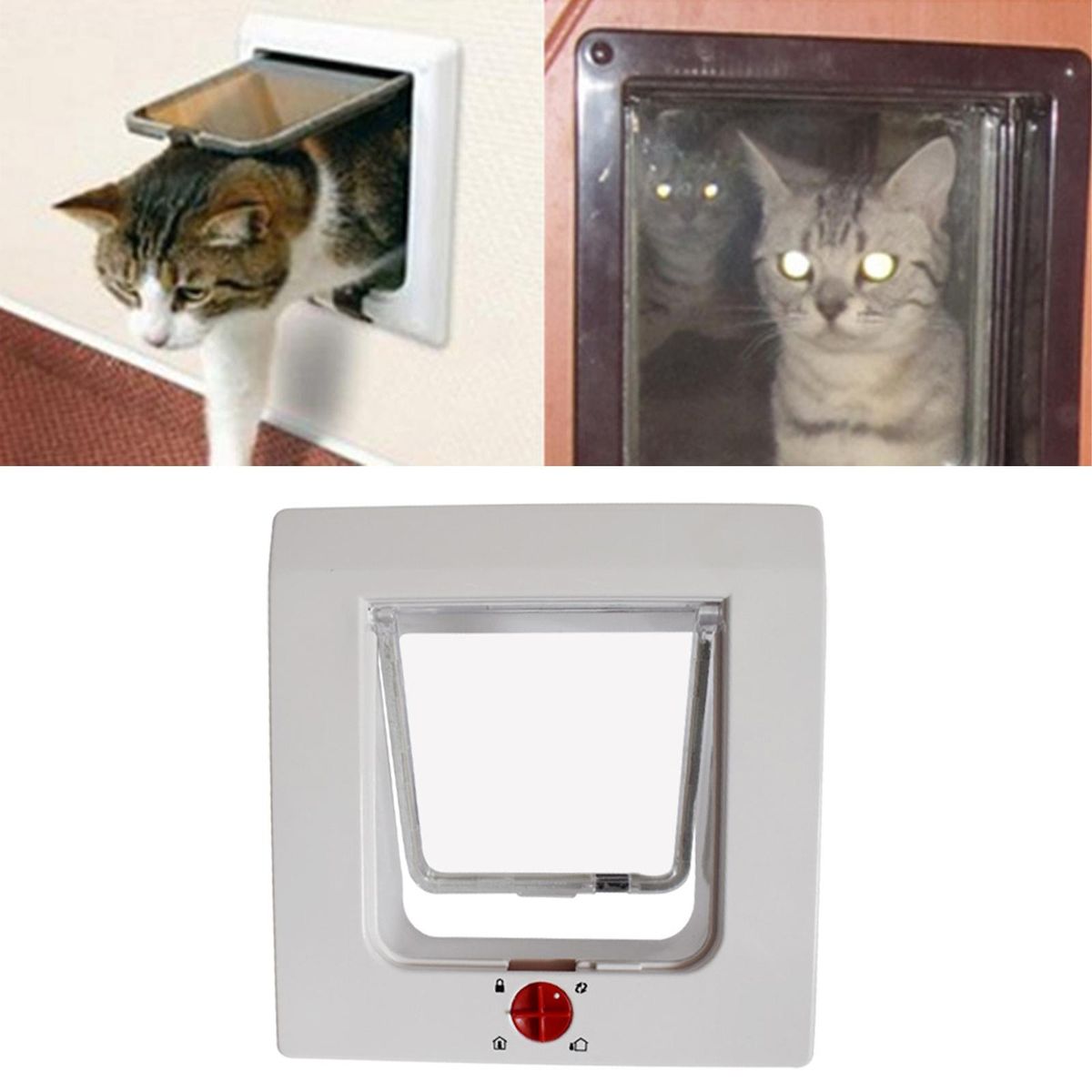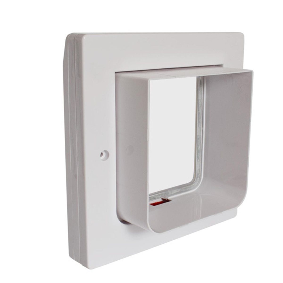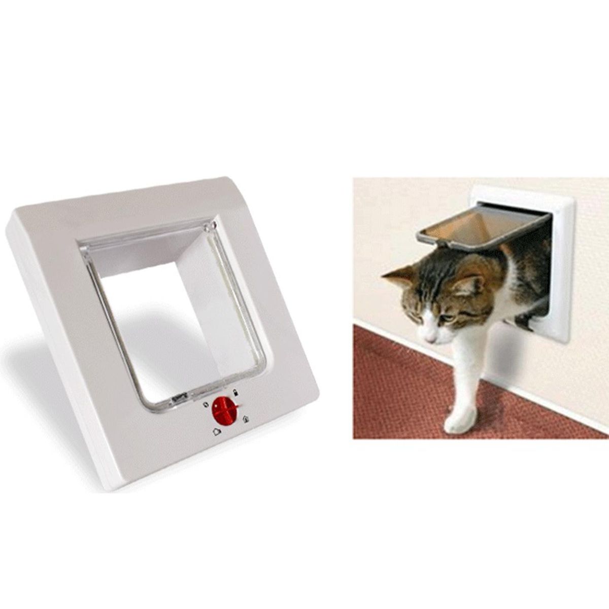 Give your cat the freedom to come and go as he or she pleases with this cat flap that has a 4 way locking system.Slide the locks on the bottom of the flap to set the door to one of the following: Locked from both sides;Cats can only enter from the outside but not go out again;Cats can go out but can not get back in (for preventing other cats also entering);Completely open and cat can come and go at its will.Made of the ABS plastic material, easy to install, simple to operate.