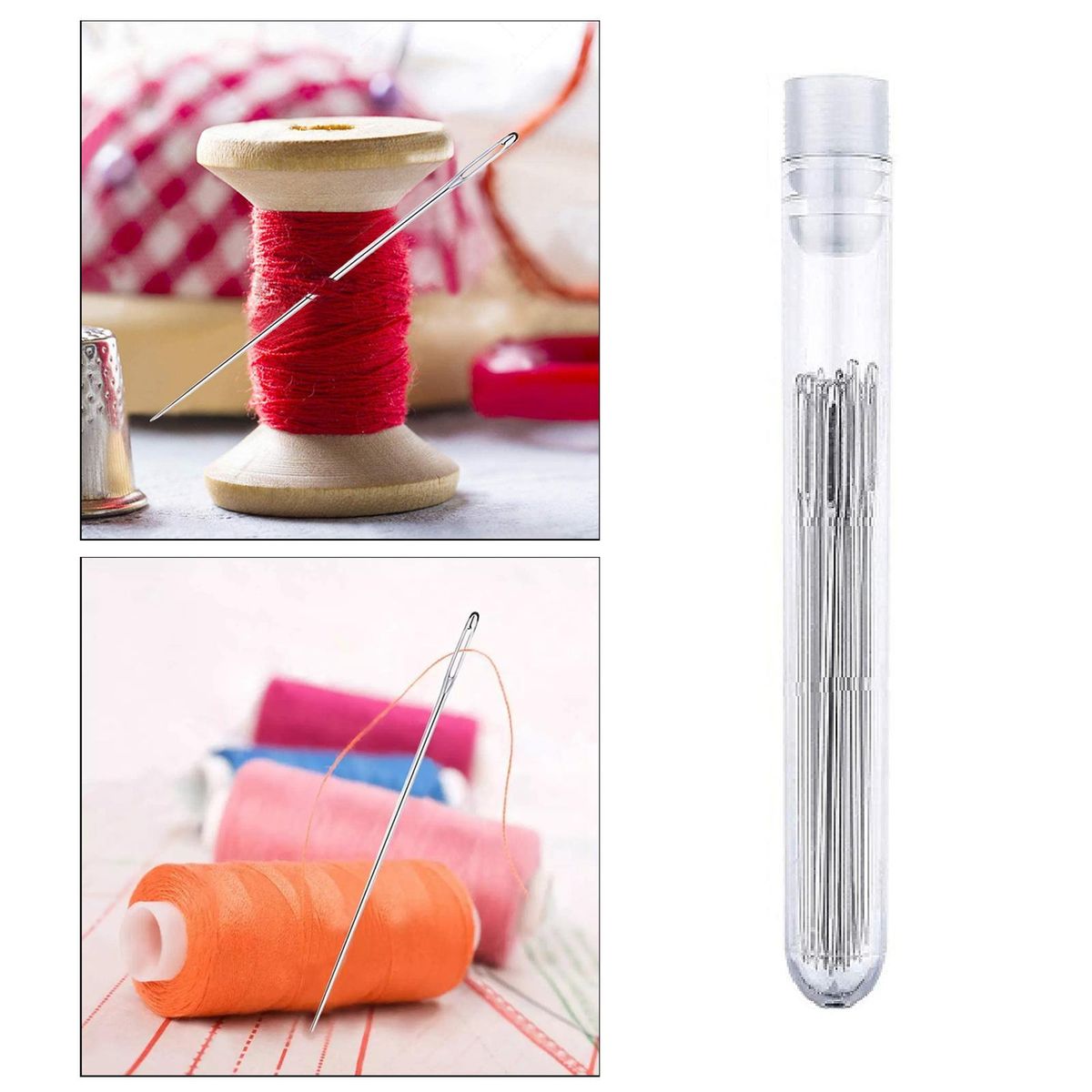 large eye sewing needles;large eye sewing needles with storage tube;easy thread embroidery long sharp ;quilting tapestry leather basket weaving tool;assorted sizes needles knitting stitching;self threading darning craft accessories