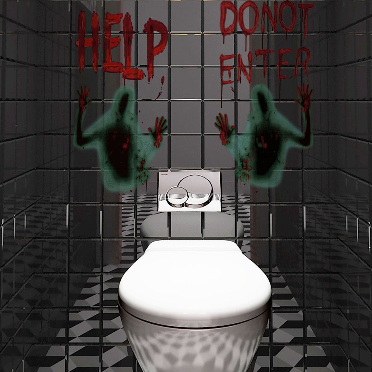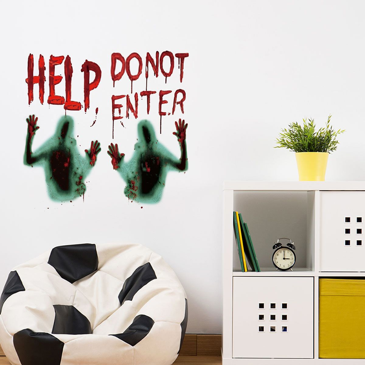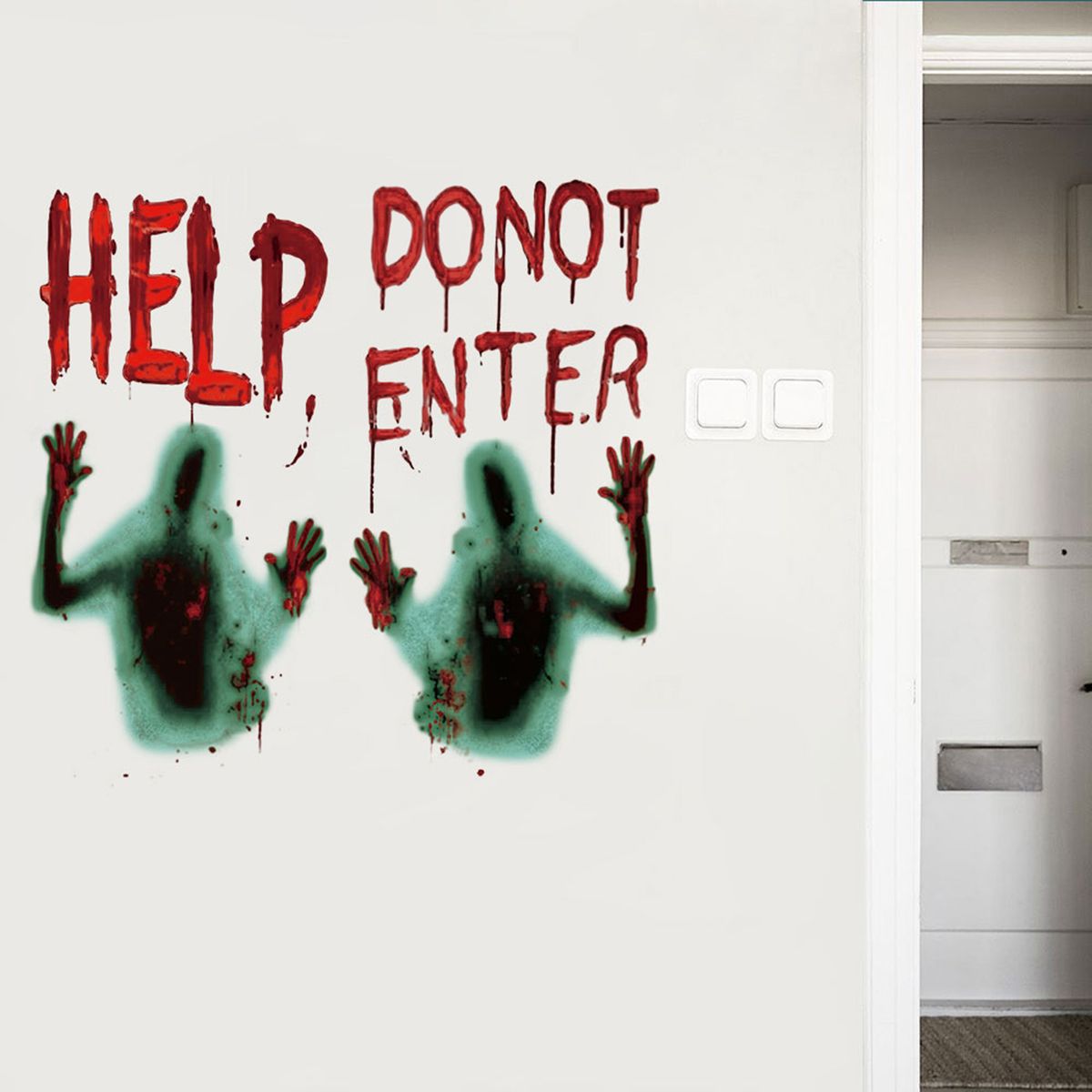 Halloween door window cover, with bloody handprint, quot;help do not enter quot; words and shadowy figures design, brings a realistic haunting atmosphere especially when light is off.