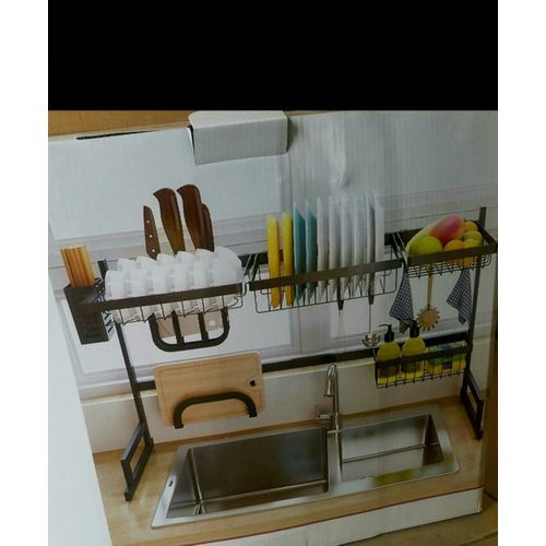 * Large Capacity: Compact 2-layer design, it has a lot of space for fixing plates, bowls, etc. Side frames for storing spoons, chopsticks, kitchen knives, chopping boards and other items.