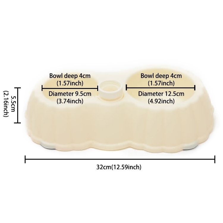 7. Food bowl diameter: 12.5cm, drink water bowl diameter: 9.5cm, bowl depth: 4cm.
