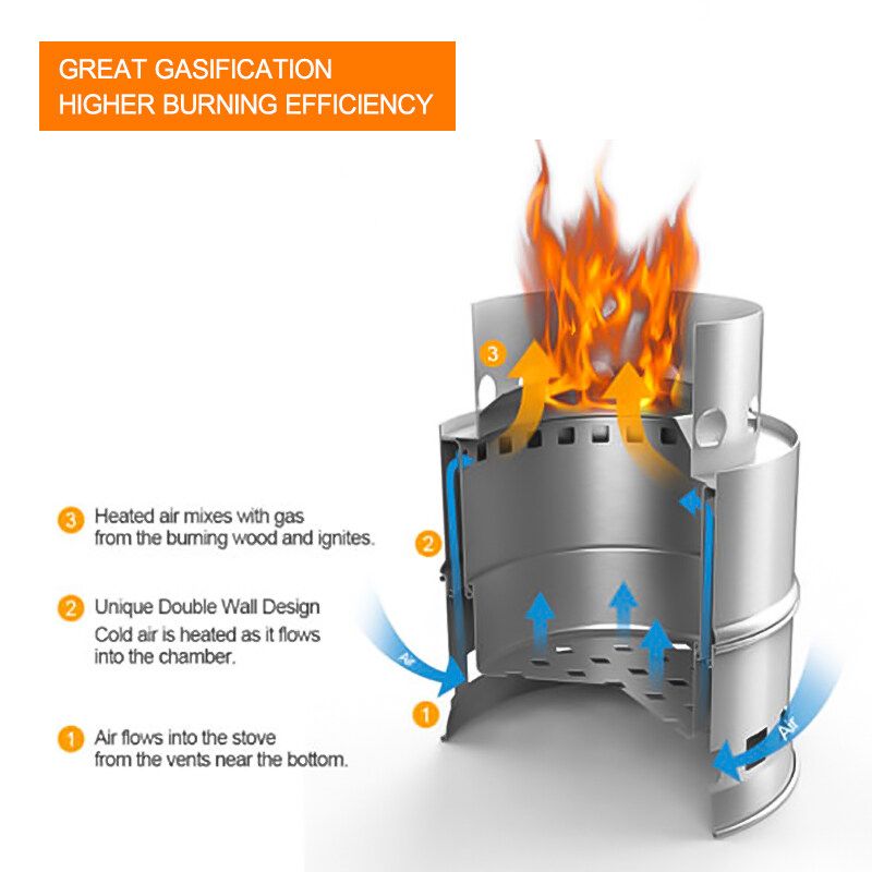 -EFFICIENT BURNING, LESS SM0KE: The wood stove is designed with a simple yet scientific structure: Wide opening makes it easy to add wood; Double-wall structure creates a clean gasification and secondary combustion; Air vents near the bottom improve air circulation to help the fuel burn more completely with less sm0ke.