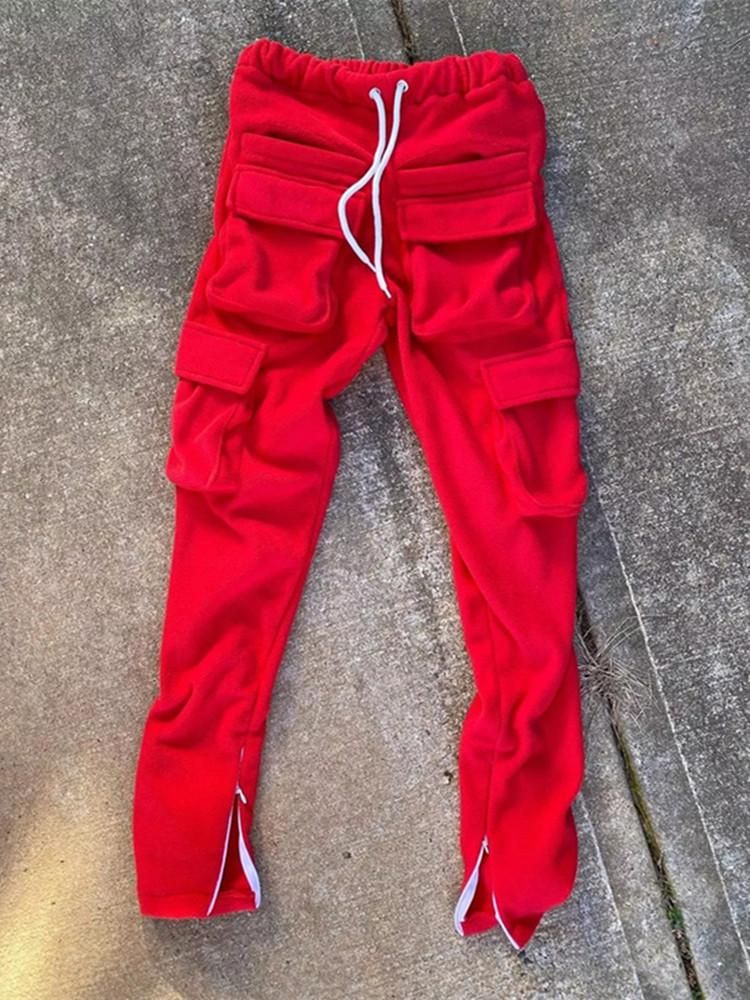 Pantalones Cargo de gran tamano para hombre ropa de calle de paso largo de lana de colores solidos con bolsillos tridimensionales calzas ajustadas calidas con paneles