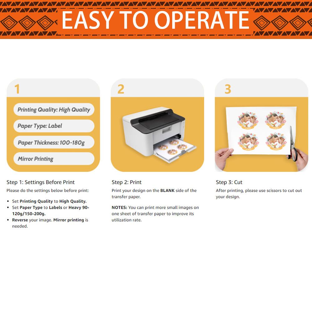 EASY TO USE: "Can I succeed at the first try?" Do you have such kind of doubts? Don't worry, our R&D team has thickened the transfer film and reduced the thickness of the backing paper according to the usage habits of home users, so that you can print continuously and the film will not get broken during transfer to ensure you succeed at the first time!