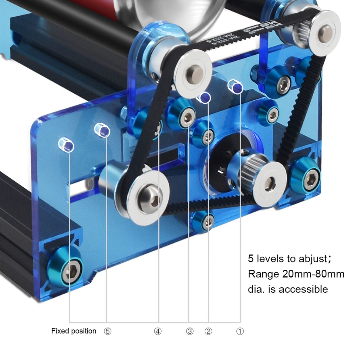 5 Angles adjustable, engraving objects diameter at range of 20mm-80mm.