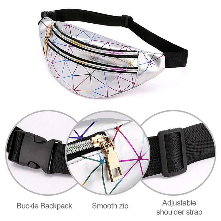 Laser Pattern PU Leather Waist Bags Women Fanny Pack Single Shoulder Bag(Black)