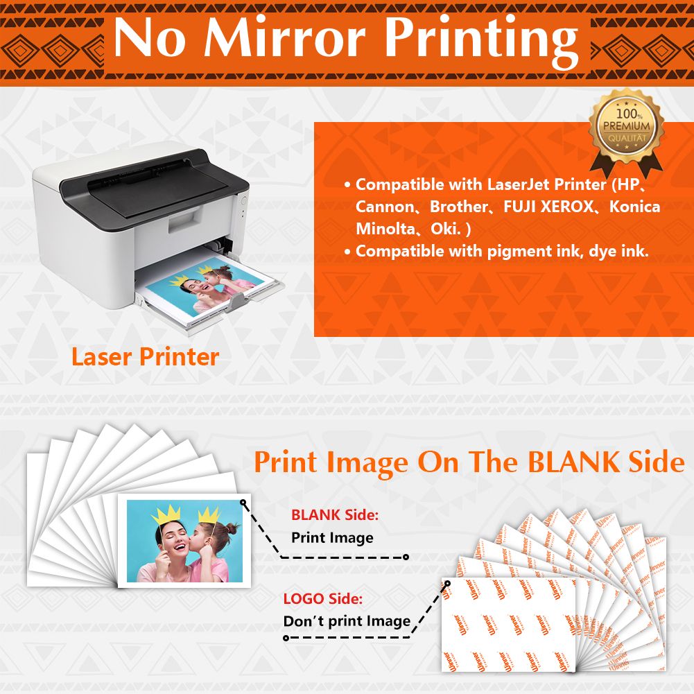WIDE APPLICATIONS: The waterslide white transfer paper is applicable to all kinds of Light and Dark materials, but cannot be used for fabrics. It is compatible with many LASERJET Printers (HP, Canon, Brothers, FUJI XEROX, Oki).
