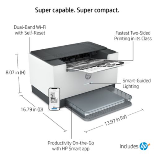 A high-quality compact mono laser printer with the fastest two-sided printing in its class2 and the time-saving HP Smart app.3 4 Includes HP+, HP's simplest printing solution - more value added with exclusive use of Original HP Toner.