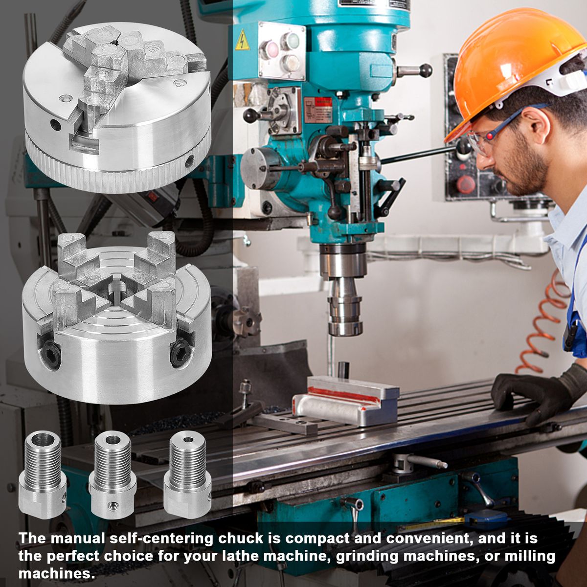 The manual self-centering chuck is compact and convenient, and it is the perfect choice for your lathe machine, grinding machines, or milling machines.