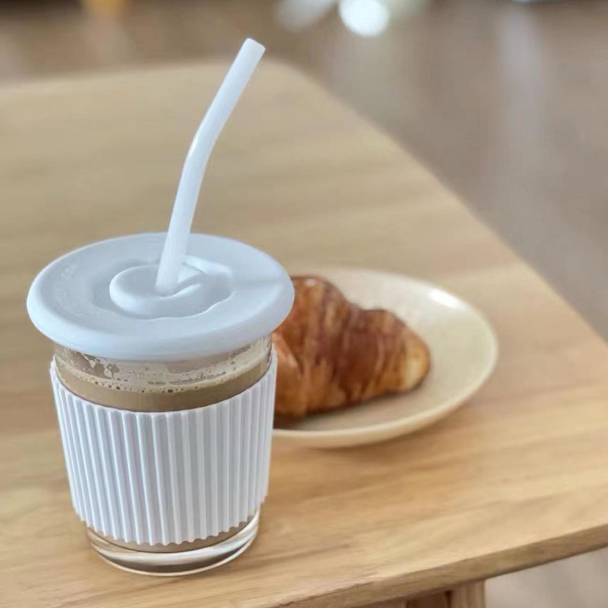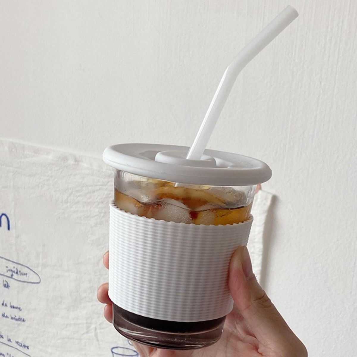 Buy Latte Cup Glass Premium Glass Cup with Lid Straw Stylish for Hotcold White in Nigeria