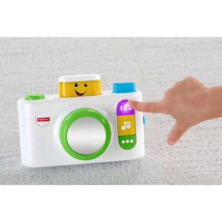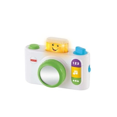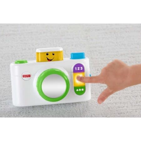 Fisher-Price Laugh & Learn Click 'n Learn Camera:Age Range: 6 - 36MTeaches Spanish words, greetings, colors, numbers and morePeek-a-boo light-up flash encourages early role play funShiny mirror lensOn/off buttonRequires 2 AA batteriesAlso available in pinkRead moreSpecificationsBrand LAUGH & LEARNGender Boys, GirlsAge Group ChildAge Range 2 Years, 12 to 24 Months, 6 to 12 MonthsColor AssortedCharacter WSManufacturer Part Number CDK39Assembled Product Dimensions (L x W x H) 5.75 x 2.75 x 6.50 Inches