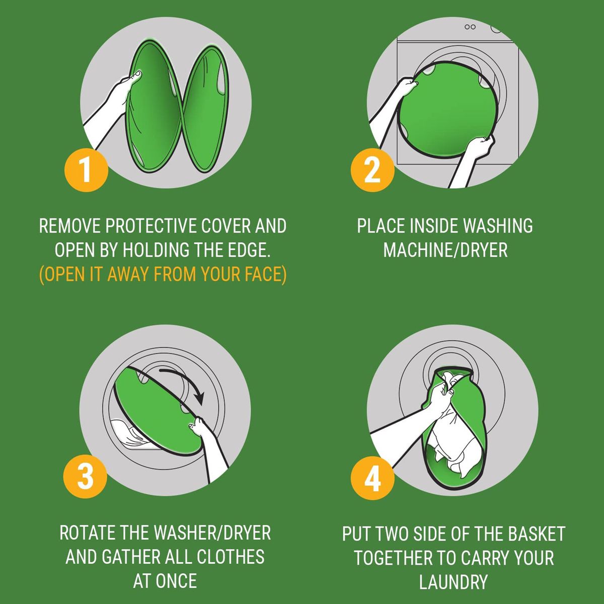Place the laundry basket inside the washing machine/dryer - Rotate the drum and gather all clothes at once.