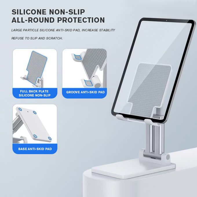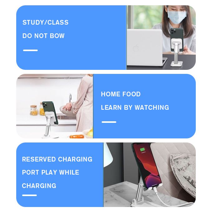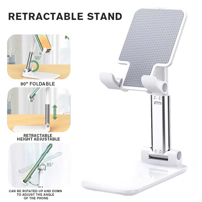 Features:1. Retractable lift and fold2. Universal for mobile phones and tablets3. The panel is made of silicone material, the force does not slip, and the typing with one hand is also very stable4. Intimate design reserved charging port, charging and watching videos are correct5. Steady, not shaking6. Lazy artifact, free hands