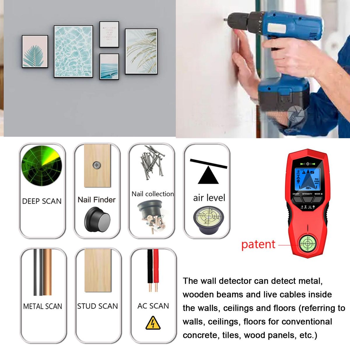 Buy LCD Backlight Display Digital Wall Detector Metal Sensor Wood Stud Finder AC Cable Scanner Three Scanning Modes Switchable with Nail Positioning Function in Nigeria