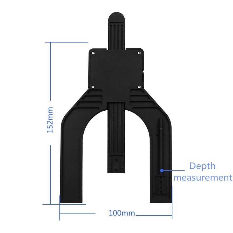 Specifications: Main material: nylon Color: black Resolution: 0.01mm Accuracy: ±0.2mm Button: ON/OFF, mm/inch, ZERO, HOLD Battery: 1 * CR2032 button battery, 3V (not included) Ruler holder height: 100mm / 3.9in Ruler holder width: 60mm / 2.4in Package size: 205 * 125 * 20mm / 8.1 * 4.9 * 0.8in Package weight: 106g / 3.7ounce