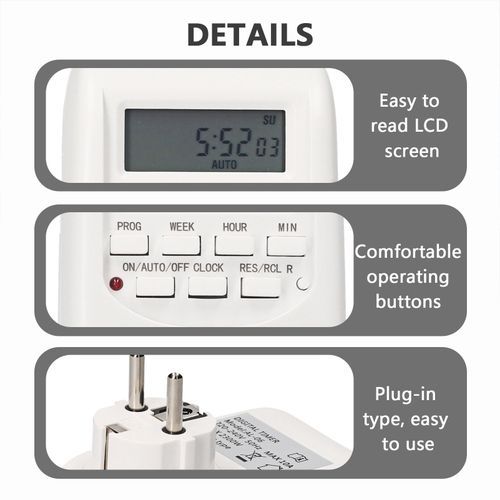 Digital LCD Display: Easy to read LCD screen, comfortable operating buttons. Compact and lightweight, plug-in type.