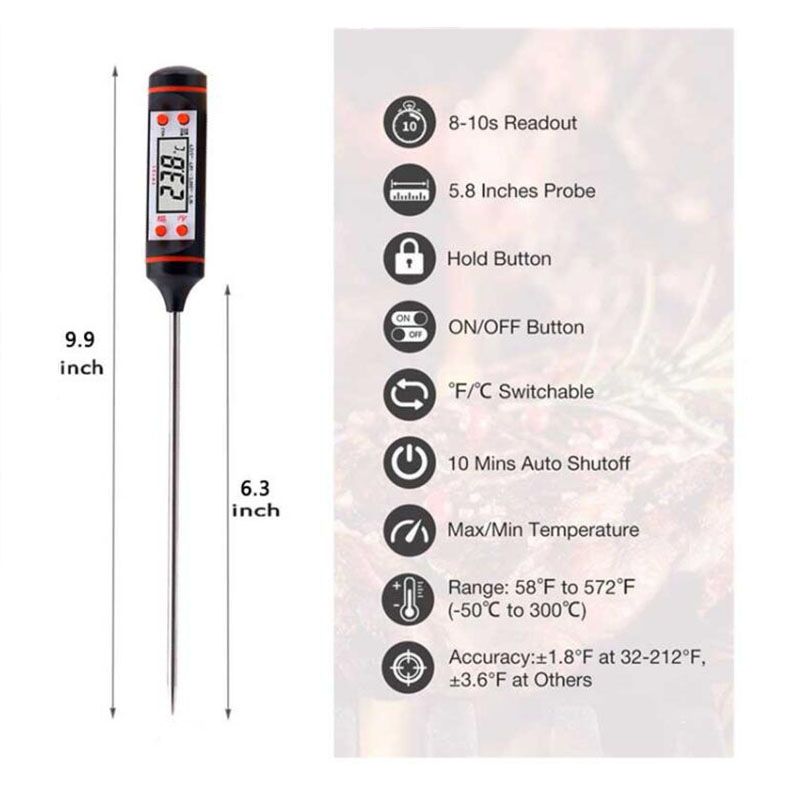 The digital cooking thermometer has the advantages of low power, high stability, and high accuracy. Easy to use just by probing the meat and push a on to get an accurate temp reading. With this thermometer you can always make sure the food you and your family are eating are safe. Everyone should have one of these at home