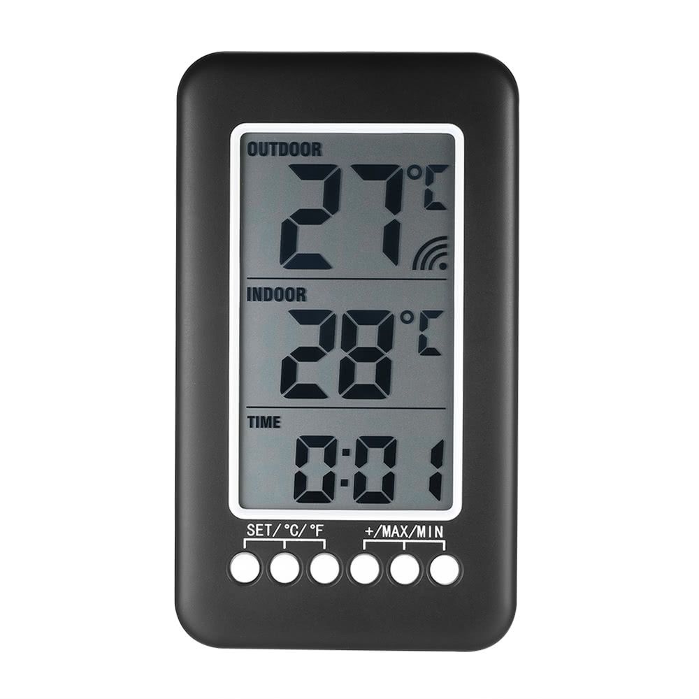 This LCD digital temperature clock which can display indoor/outdoor temperature and time simultaneously, is great for home use. It is suitable for desktop placing or wall hanging. Large LCD display, you can easily read the value. Accurate measurement for measuring indoor amp; outdoor temperature.