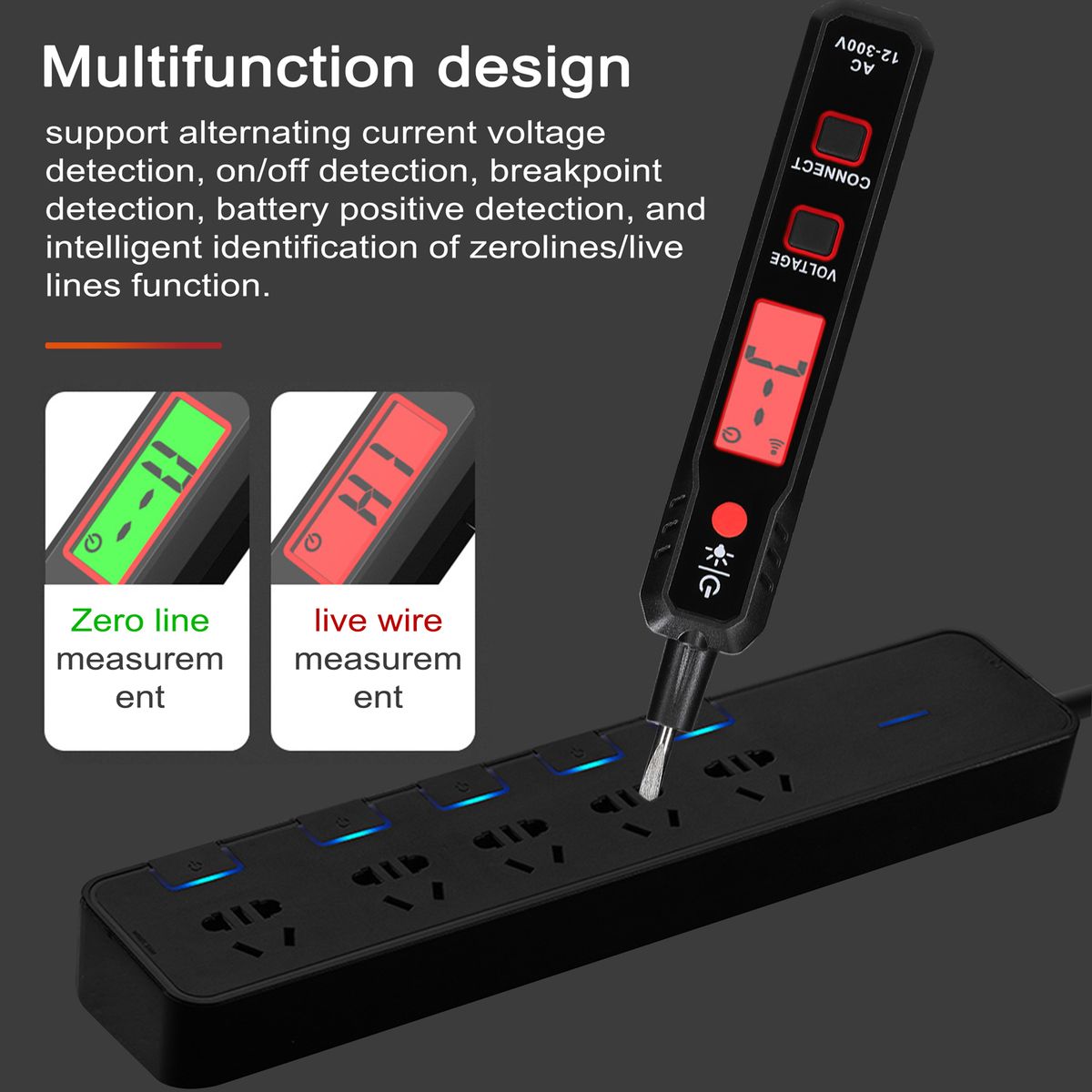 Multifunction design, support alternating current voltage detection, on/off detection, breakpoint detection, battery positive detection, and intelligent identification of zerolines/live lines function.
