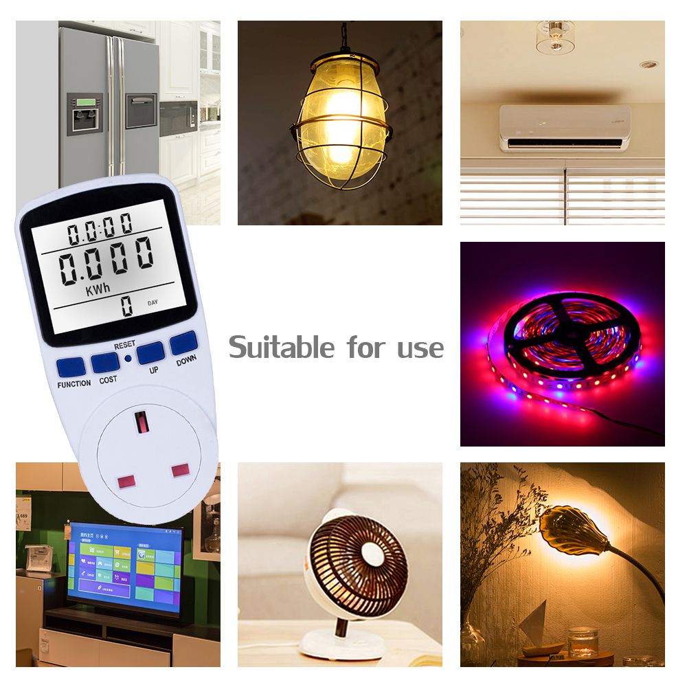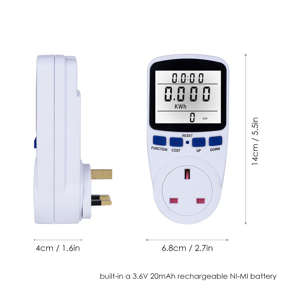 7 Display Modes: it can display time, watt, cost, cumulative electrical quantity, voltage, frequency, current, factor, minimum , maximum , price.