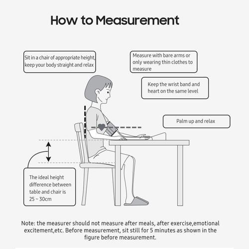 - Arm type of design,you need to take off your coat or your sweater for measuring accurately.